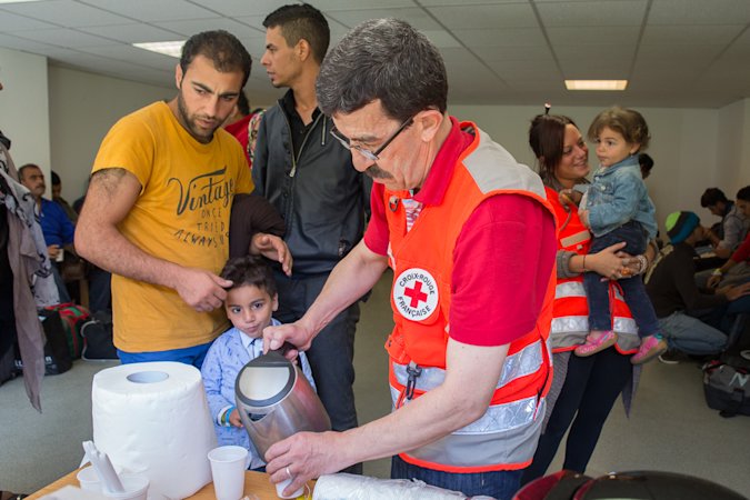 Soixante-dix-sept réfugiés ont été accueillis simultanément dans le monastère des Orantes, à Bonelles (Yvelines), et d'autres dans un centre de loisirs de Cergy-Pontoise (Val-d'Oise). Au total, mille personnes venues d'Allemagne devraient arriver sur le territoire d'ici vendredi.Tout en rappelant l’inconditionnalité de l’accueil comme préalable à sa mobilisation, la Croix-Rouge française rappelle qu’il est de son devoir - comme cela se fait dans tout le Mouvement international Croix-Rouge - de prendre en charge ces personnes en situation de grande détresse, comme elle le fait auprès de toutes les personnes vulnérables et en situation de précarité.