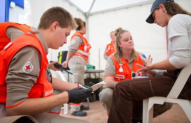 Fiches de briefing en main, Clément, président de la délégation territoriale de l’Hérault, opine. L’accueil des nouveaux bénévoles, c’est un peu son dada - « j’ai envie que les nouveaux puissent vivre sans attendre ce pour quoi ils sont venus frapper à notre porte ». Alors oui, la formation est essentielle. L’homme en est persuadé : « un diplôme ne s’use que si on ne s’en sert pas. Et un jeune secouriste est prêt, la seule chose qui lui manque c’est l’expérience, le terrain – le stress lui, est logique, et plutôt sain. D’ailleurs les chefs d’équipe sont justement là pour que tout se passe bien ».