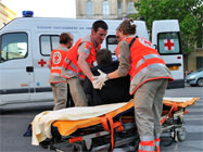 Dans les arènes, le soleil et la chaleur étouffante entraînent de nombreux malaises : les secouristes de la Croix-Rouge sont sur le pied de guerre, chargés de porter secours aux spectateurs tout comme aux matadors, lorsqu’ils sont la proie des taureaux de 600 kg.