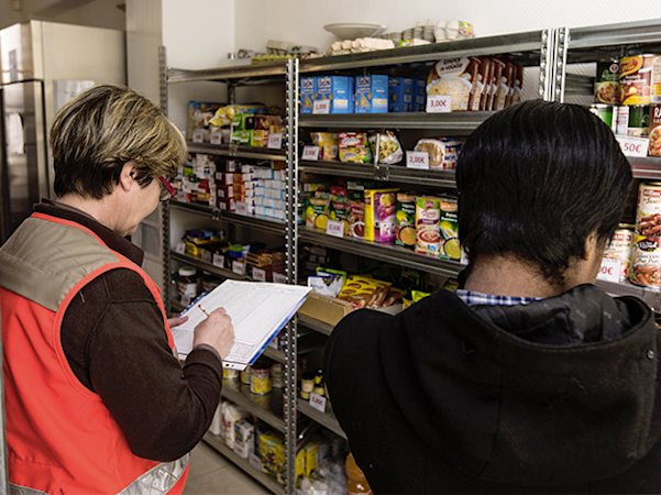 Comme dans la centaine d’épiceries sociales que compte la Croix-Rouge française, une participation financière modique - environ 20 % des prix publics – est demandée pour avoir accès aux denrées. Un budget hebdomadaire est fixé en fonction du quotient familial (ressources - dépenses incompressibles du foyer/nombre de personnes à charge) des bénéficiaires. Cette contribution est d’ailleurs appréciée, car elle répond à la fois à l’exigence d’autonomie des personnes et participe au maintien de leur dignité. « Les gens apprécient le fait de payer. Cela leur fait moins mal de venir ici », confirme Pascale. Car il est difficile pour elles de franchir la porte la première fois. Les pleurs sont fréquents lors du premier entretien, renchérit Laurence, son binôme. « Le bureau d’accueil fait souvent office de bureau de décompression. C’est là que l’on perçoit toute la détresse des personnes accueillies ». La dizaine de bénévoles attache une attention particulière à la qualité de l’accueil et de l’écoute. Ces temps de parole se font également autour d’un café ou en accompagnant individuellement chaque bénéficiaire dans les rayons.