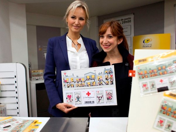 Philatélistes, charme et bonne humeur étaient au rendez-vous pour le lancement du nouveau bloc de timbres émit par la Poste, au profit de la Croix-Rouge, à la boutique du Carré d'encre, le 14 novembre 2012.