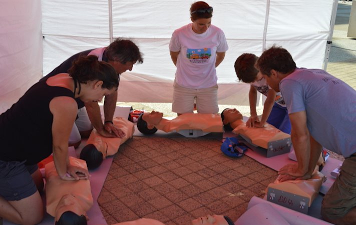Au programme, des formations gratuites présentées sous forme d'animations d'une demi-heure chacune, autour des gestes qui sauvent, de la réduction et prévention des risques et du bien-être des seniors. Les personnes venues se former, vacanciers et résidents, groupes d'amis et familles, ont été ravies de pouvoir découvrir ou (re)découvrir ces gestes et connaissances indispensables dans un cadre aussi convivial.