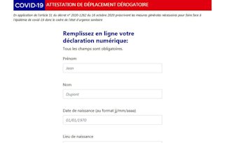 Covid-19 Attestation de déplacement dans le cadre du couvre feu