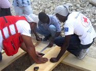 En support de la Croix-Rouge haïtienne et avec l’aide de volontaires des communautés, ces latrines temporaires sont en cours d’installation. Durant ce week-end, une cinquantaine de latrines ont déjà été installées et sont fonctionnelles au camp Richard Bonnefil qui regroupe 4500 personnes, dans le quartier de Cité militaire, où la CRF distribue déjà de l’eau.