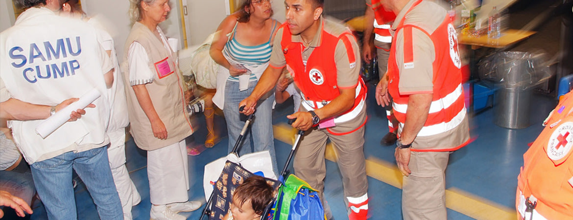 La Croix-Rouge française intervient en zone aéroportuaire à la demande de la préfecture ou du Ministère de l'Europe et des Affaires Etrangères. En collaboration avec de nombreux partenaires (préfecture, DASS, aéroport, SAMU, la Cellule d’Urgence Médico-Psychologique, la Police de l’Air et des Frontières), nous aidons les rapatriés dès la sortie de l’avion :