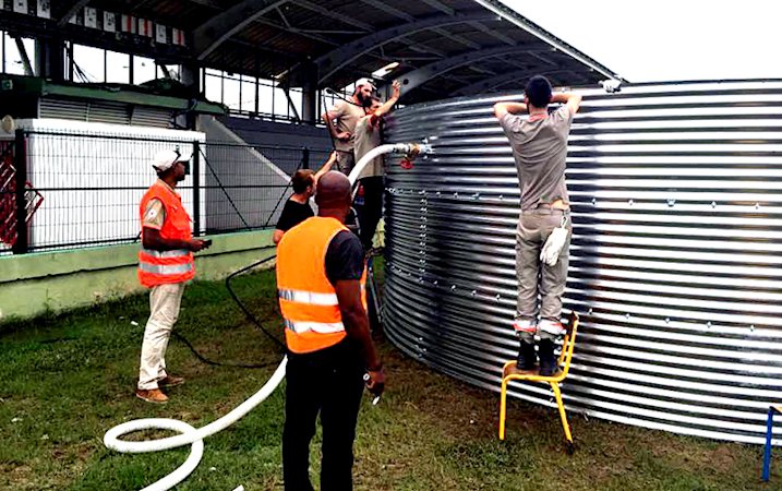 Onze énormes réservoirs sont en cours d’installation.