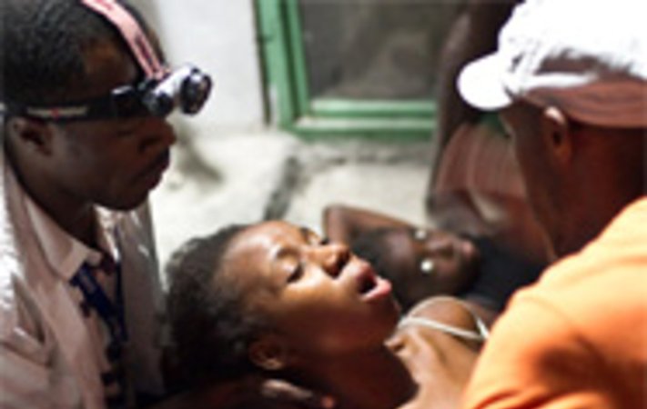 La Croix-Rouge française, basée à Port-au-Prince, fait également le nécessaire pour rapatrier du matériel basé à Saint-Marc, ville située à une centaine de kilomètres au nord de la capitale : des kits hygiène et abris pouvant bénéficier à 750 familles y sont entreposés, ainsi que du matériel permettant de monter un système de traitement d’eau pour 40 000 personnes. Le rapatriement de ce matériel reste suspendu à l’état des routes. Une évaluation est en cours. Trois cellules de crise ont été mises en place en Guadeloupe, Martinique et Guyane, où la communauté haïtienne est très importante. Un avion pourrait être mis à disposition de la Croix-Rouge française pour acheminer en Haïti le matériel (des bâches en plastique, des jerrycans, des couvertures, des tentes, des hôpitaux de campagne) stocké actuellement sur nos plateformes d’intervention régionale pour la zone Amériques - Caraïbes (PIRAC). Sains et saufs mais très choqués par la violence du séisme, les deux délégués de la Croix-Rouge française en mission à Port-au-Prince parlent d’un chaos total dans la capitale haïtienne. Port-au-Prince n’est plus qu’un amas de décombres, surplombé par un énorme nuage de poussière qui rend la ville invisible du ciel. Nos volontaires ont passé la nuit à participer aux secours des blessés et à leur évacuation vers les hôpitaux. Les locaux de la Croix-Rouge française, qu’elle partage avec la Croix-Rouge canadienne, ont tenu bon, par miracle. Les bureaux de la Croix-Rouge haïtienne, en revanche, sont détruits. De nombreuses sociétés nationales se trouvent sur place à Port-au-Prince et vont se répartir les missions d’urgence.