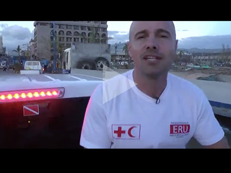Arrivée des équipiers Croix-Rouge française à Ormoc, sur l'île de Leyte, aux Philippines.
