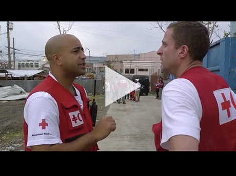 Le dispositif Croix-Rouge Croissant-Rouge réunit plusieurs sociétés nationales de différents pays. Ici, les Croix-Rouge française et américaine venant sur place en appui à la Croix-Rouge philippine pour de la distribution.
