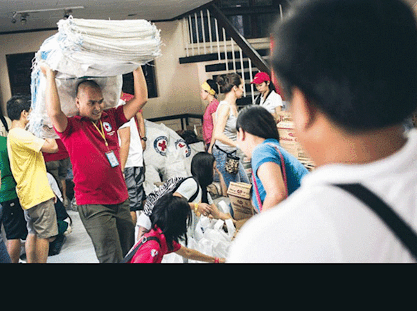 Par chance, la Croix-Rouge philippine dispose d’une base dans la province de Cebu, où étaient pré-positionnés des produits alimentaires et matériels de secours d’urgence. Au total, 2 000 boîtes de conserve, 4 000 couvertures, 4 000 tapis de sol, 2 000 kits d’hygiène, 2 000 jerrycans, dix tentes destinées aux soins de première urgence et 5 000 kits contenant des produits de première nécessité ont pu être distribués immédiatement avec le soutien du Comité international de la Croix-Rouge (CICR).